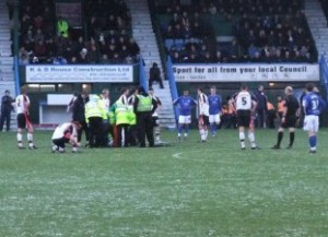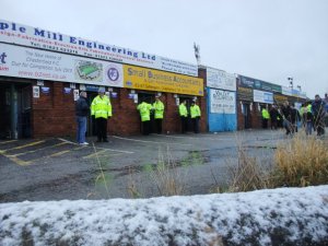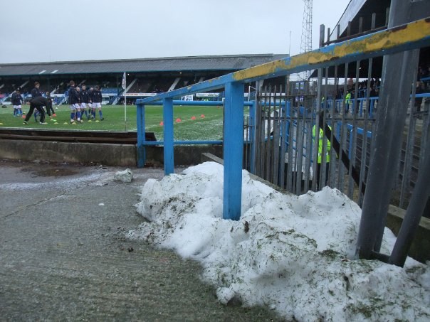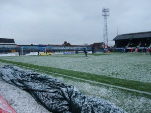 It was just little over 4 months since I had been sat at the New Meadow, watching the Spireites play Shrewsbury in beautiful sunny weather. However this game couldn’t have been more different weather wise. The Rotherham game had been called off on the 28th December due to frozen pitch and it was questionable that this match would go ahead either. The game did though go ahead after a pitch inspection from referee Phillips who decided the pitch was playable.