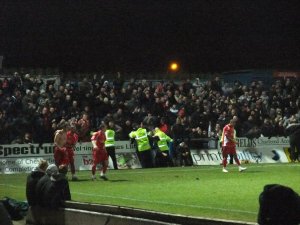The match kicked off at 7.45 infront of a crowd of 4951, and both sides had chances. However neither side seemed to have brought their shooting boots with them as they both missed many good chances by some distance. Even Jack Lester, who had returned from injury, couldn’t make a difference and the score at half time was 0-0.