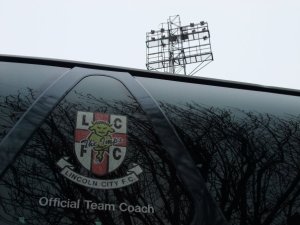 The Lincoln team coach arrives at Saltergate