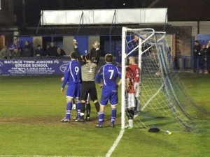 However Matlock had the last laugh as Matlock’s attacker was brought down in the box by the goalkeeper as he was through to score. Ross Hannah converted the spot kick to get his third and Matlock’s fourth to give them all three points despite FC United’s late efforts to draw level.