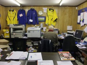 We had a wander around the ground taking photos and looking a all the various flags put up by FC United fans which included quite a few green and gold colours and anti ‘Glazers’ slogans.
