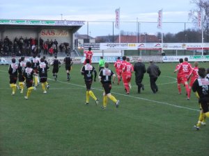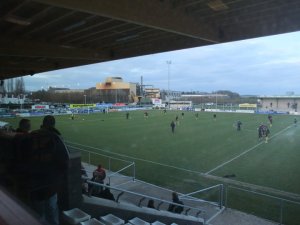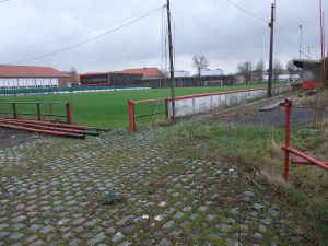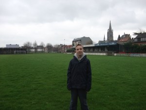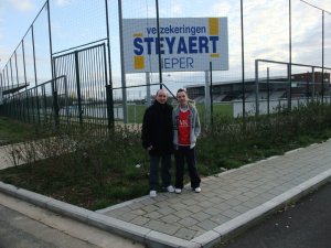 Before going on a 4-day trip to Ieper/Ypres in Belgium for a battlefields tour, which also took us to the Somme, we had searched to see if there was a football team in the town. When we found that there was that they were at home on the Saturday night that we arrived we decided that we couldn’t miss this chance. Despite a long days travelling from Sheffield to Ypres, which began at 4am, we still decided to go to the match and after asking a few directions along the way, we managed to find the ground in plenty of time. After paying €10 each to get in, we entered the ground and had a look at my first ever foreign football ground. The ground was nice, there was a fairly large seating area running down one side, where mostly home fans sat. On the opposite side the was a smaller standing area for the away fans. Surprisingly there was a burger van at the ground, so as we do at alot of ground, we bought a burger. It tasted OK, but different to british ones which don’t use hard crusty rolls. We then went up to the bar area which was full of fans, home and away, drinking and chatting before the game. In there my Dad bought a KVK Ieper pin badge as a souvenir. When I took my seat they look like someone had come and cut them in half. The bottom half of the seats were there but no back rest. The crowd’s began to turn up and there were lots of passionate fans from both Ieper and Oudenaarde (and Sheffield!). The fans were singing and chanting as the players came out for the unusual 7pm Saturday kick off. The attendance was 1,000. The away side looked the better of the first half, creating alot of chances and playing well. Ieper did have chances too, but it was Oudenaarse who took the lead in the first half, much to the dissapointment of the lady sat behind me, who was shouting for alot of the match. Almost immediatley in the second half, before most fans had even taken there seats, Ieper equalised from a volley into the top corner. Ieper played some better football and didn’t look too bad in the latter stages but the game ended 1-1, which is no good for either side really as before the game that sat 15th and 16th out of 20 sides. We took the short walk back to the hotel, though despite being quite a long way from Sheffield, the weather was no different as the rain fell. I enjoyed my first ever experience of a foreign football match, the ground was nice and the match was of decent quality. See the photos below, and the report about the old ground below them. 0-1 (Raes ’30) 1-1 (Pecqueux ’47)