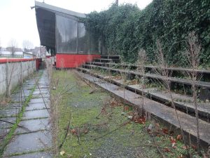 While looking to see if there was a team in Ieper, we also found out that they had a lost ground so we decided to visit. I don’t know the full details, but they can’t have been gone for very long as the ground was exactly as it would have been if they had been playing. The stands were still there, the scoreboard and even netting was still up! You can see photo’s below.