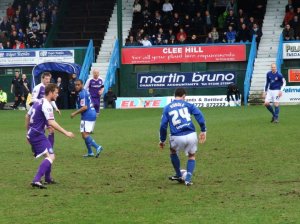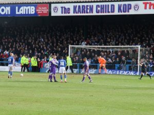 In the second half Chesterfield began to take a little bit of control, creating a few chances against the league leaders Dale. Chesterfield’s first goal came after the ball was crossed into the area and it hit the Rochdale defender’s hand. Referee P Quinn ran across and gave the penalty immediatley without any thought. Barry Conlon stepped up and fired the ball into the back of the net right in front of the Kop.