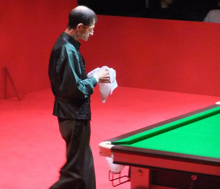 Alex Higgins cleans the white ball himself