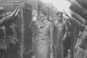 On 1st June 1940 Adolf Hitler visited the cemetary on a visit to Flanders. Below you can see a picture of me at the gate he was pictured walking through.
