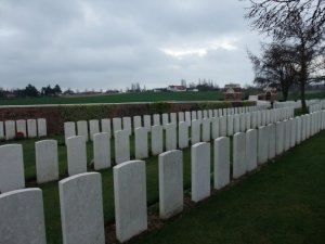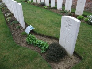 The graves of 86 people are defined as “special memorials”— that is, they are either recorded as being buried here but the CWGC was unable to find proof (headstones marked “Believed to be buried in this cemetery”) or they are known to be buried here but their exact location was lost or destroyed by later fighting (headstones marked “Known to be buried in this cemetery”).These graves all carry (unless replaced by a personalised family message) the inscription at the foot of the stone “Their Glory Shall Not Be Blotted Out” – a line from Sirach 44:13 suggested by Rudyard Kipling.