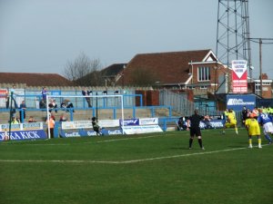 Chesterfield started well creating chances and having the better of the early stages. However it was Dagenham who got the first goal on the 25th minute when the referee gave an extremely soft penalty against Mark Allott for a push on Daggers player Nurse. Danny Green sent the keeper the wrong way to give Dagenham the lead.