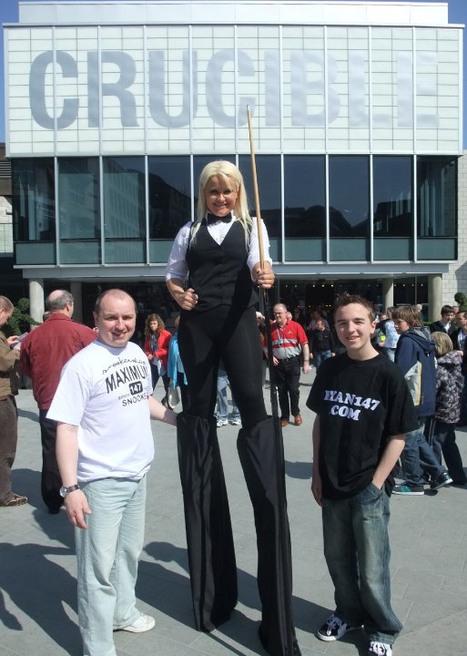 Me and my Dad with Sarah, who does stilt walking and fire eating