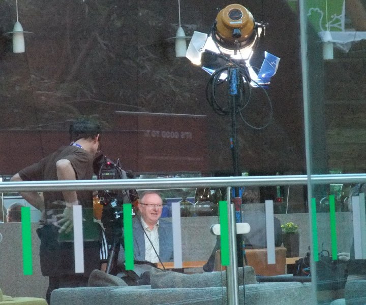 day5.8 ← Previous Next → Dennis Taylor doing an interview in the St Paul’s Hotel next to the Winter Gardens