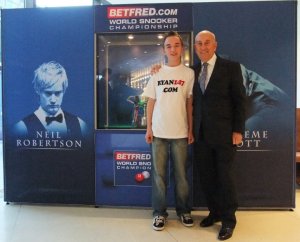 I got pictures with owner of Betfred, the tournament sponsors Fred Done, MC Rob Walker, Dickie Bird and Richard Caborn MP. I also got a wonderful photo with the two legends and world champions, Ray Reardon and Cliff Thorburn. Just as we headed off home I spotted the World Snooker Chairman Barry Hearn walking down Tudor Square. He was a lovely guy and he was very friendly, signing and having photos with everybody, including me of course!