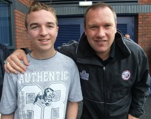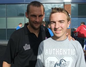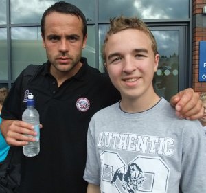 As we first arrived I spotted Hereford United manager Simon Davey arriving at the ground, and so I had my picture taken with him. Chesterfield striker Craig Davies, who was suspended today after getting sent off against Barnet, and I had my picture with him too.