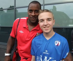 After the game I met lots of players from both sides. I got a photo with Ian Breckin, who played in my first match, and today. Goalscorers Dwayne Mattis and Craig Davies, and Jordan Bowery also had pictures with me.