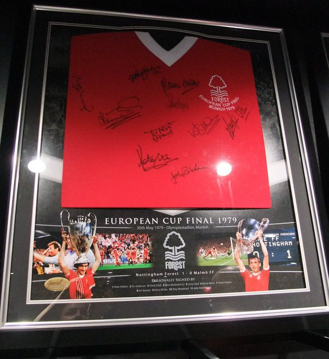 forest21 ← Previous Next → A framed replica shirt signed by the 1979 European Cup winning side. Shortly after this had been taken it was bought for £500
