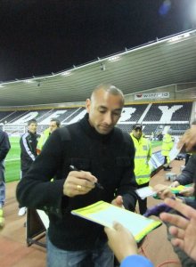 While the players were singing their national anthem’s, I had a picture with Derby County’s Robbie Savage, who was reporting for ESPN. I just turned around after having the photo and noticed Andriy Shevchenko, who was out injured, signing for a couple of fans in the stands, so I ran over and got a picture with him. Shevchenko is by far the most famous footballer I have met to date. He has won the Champions League, Serie A, FA Cup, Ukrainian Premier League and many more trophies. He has played for AC Milan, Chelsea and Dynamo Kiev, won the 2004 European Player of the Year, and played 100 times for Ukraine.