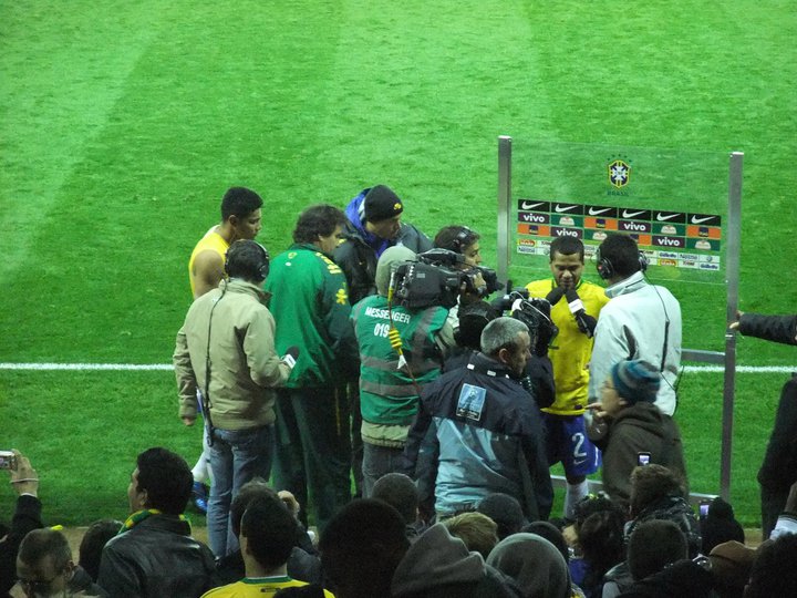 Dani Alves is interviewed at half time