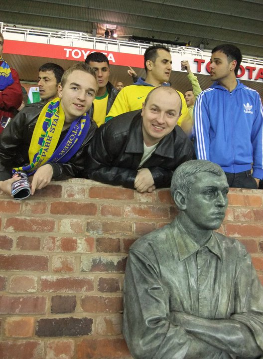 A small statue of Steve Bloomer is next to the dugouts