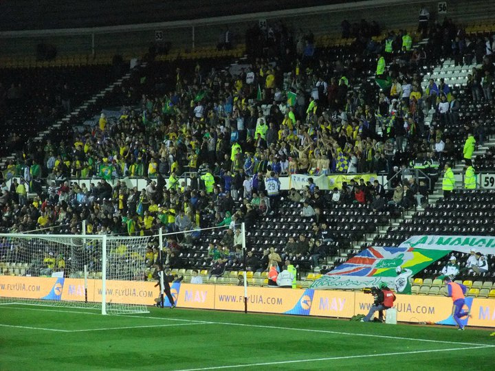 Brazil and Ukraine fans singing behind the goal