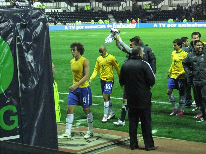 The Brazil players head down the tunnel