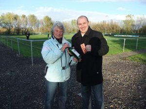 My Dad receives the raffle prize at the end of the game