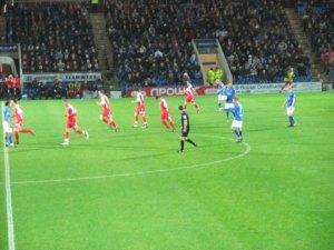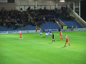 Sadly the rain was pouring down when we arrived at the ground, so we went straight through the turnstiles and took our seats in the East Stand. The ground was filled nicely ,considering it was a rainy tuesday night match, and an attendance of 6,034 was lots more than we ever got for evening games at Saltergate.