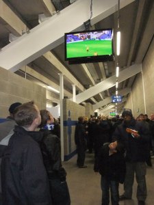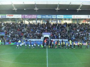 Chesterfield began to play better after this early shock, and with just a minute to go before half time, Derek Niven’s shot across goal was deflected into the net by a Burton defender to level the game up. Danny Whitaker, who had clearly got a bit annoyed with the Brewers fans behind the goal, picked up the ball and fired it into the back of their stand, neary smashing one of the lights!