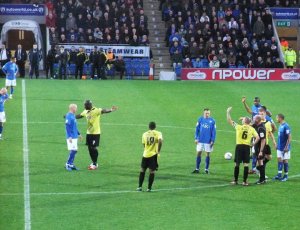 It was end to end stuff in the second half, with both sides going for the win. On the 60th minute, Derek Niven was given a straight red card for a perfectly fair tackle, by Premiership referee Lee Mason. By now the referee had totally lost it, not knowing what was going on, which really did make you wonder how he copes with taking charge of Premier League matches.