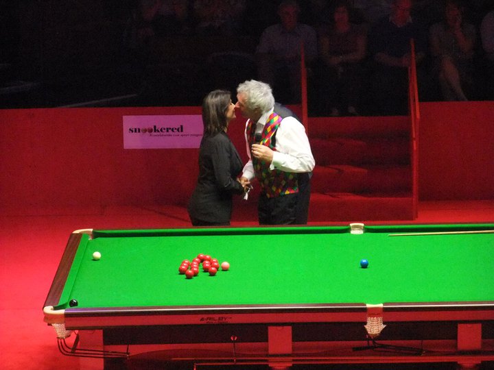 Tonight’s referee Michaela Tabb is greeted by John Virgo