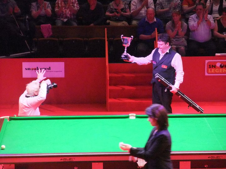 Jimmy White holds up his first Crucible trophy