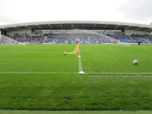There was a brilliant atmosphere inside the ground, with all 4 stands filled with singing Chesterfield fans while the 142 away fans were situated in the corner of the East Stand. A new scoreboard had also been put up in the North Stand which looks good and adds to the whole ‘new stadium’ feel of the ground.