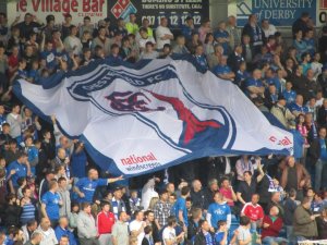 Chesterfield flags on the North Stand, where away fans are usually situated