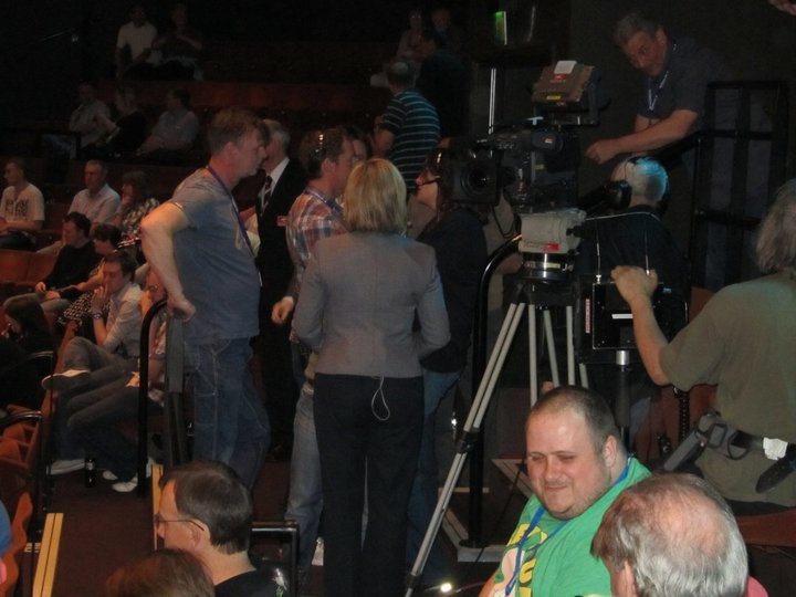 The BBC filming from inside the Crucible