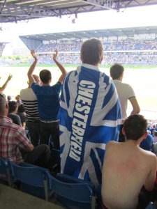 After a brilliant and incredibly succesful first season at the B2Net Stadium, Chesterfield’s promotion to League 1 had finally become official the day before this game due to Wycombe’s failure to beat Torquay United, meaning the Spireites were promoted without kicking a ball. This meant that our visit to the Kassam Stadium for the match against Oxford United would be a big promotion party and a great day out.