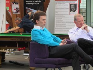 The match we were seeing was the opening session of the second round tie between Bingham and Ding, and despite the man from China being strong favourite, Bingham got off to an excellent start taking an early 3-0 lead. Ding pulled two frames back and looked to be making a good comeback, but Bingham won two of the last three frames to lead 5-3 at the end of the session. He looked to be playing much the better snooker and Ding looked nervous, which is understandable with the massive pressure on him to succeed from his fans back in China.