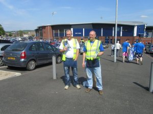 There was lots of optimism, with flags and t-shirts saying ‘Chesterfield Promoted Champions’ on them even though the Spireites were yet to officially win the league. We wandered around for a while soaking up the atmosphere, chatting to various fans we know and taking plenty of photographs.