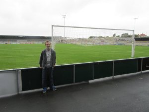 At pitchside with the main stand behind me