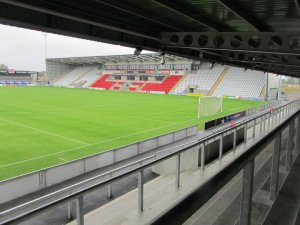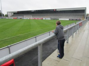 The main stand which is all seated is by far the best area of the ground.Behind each goal there are standing areas which is suprising as most newly built grounds tend to have seating. However it is the area opposite the main stand which again is all standing that looks rather out of place. It makes it look like the ground is unfinished, though I suppose it leaves plenty of room to develop the ground in the future.