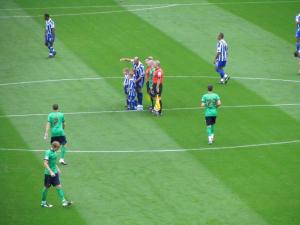 The game kicked off at 3 o’clock and the Owls got off to the better start, breaking down the wing and crossing the ball in to dangerous areas more than once early on. Wednesday deservedly took the lead on the 17th minute when Lewis Buxton rose above the defenders to head the ball home straight from a corner.