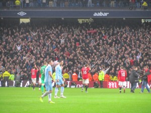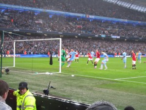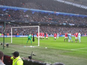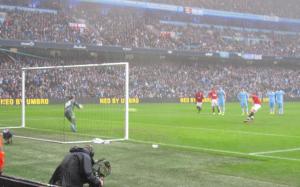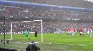 As the last few moments approached, City won a free kick in a similar position to where their first goal had come from. Kolarov fired in the free kick but the ball was cleared away. Aguero quickly got hold of the ball and his low cross appeared to hit the hand of Phil Jones but the penalty shout was waved away and a corner was given. The City keeper went up for the corner and he even managed to get his head on the ball but the chance disappeared and as the final whistle went it was 3-2 to Manchester United.