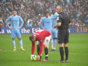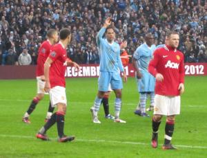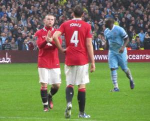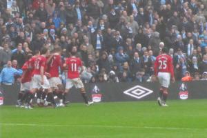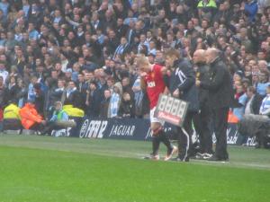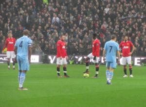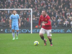 The early minutes of the game saw City dominate and pile pressure on to the United defence, but they coped well and kept the game level. On the 10th minute, the Reds took the lead with their very first attack of the game courtesy of a quality header from Wayne Rooney that bounced off the underside of the bar and in. Rooney subsequently ran to the corner flag kissing his badge which both squashed any rumours that he may be leaving United and wound up the already angry City supporters.