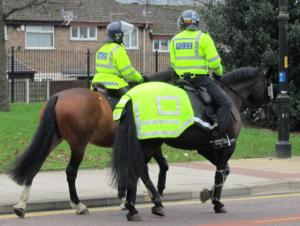 Police on horses in the area around the stadium
