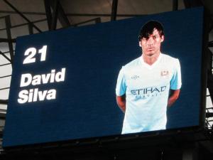 A flag with City player David Silva on