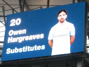 The City bench includes former United player Owen Hargreaves
