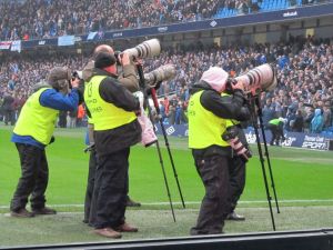 Filming the reports for TV outside the stadium