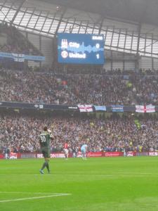 We arrived outside the stadium with around 2 hours to go before kick off and the atmosphere around was already buzzing. After taking a few photos and buying a scarf with ‘City v United’ on as a memento, we decided to stand near the main entrance to see if we could see any ‘celebrities’ heading in before the game.