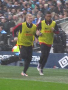Owen Hargreaves and Abdul Razak warm up