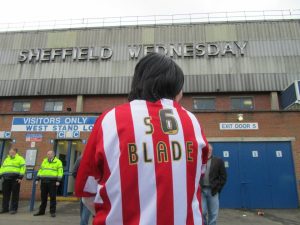 A Blades supporter outside Hillsborough