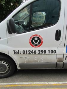 A van parked outside the ground!