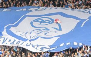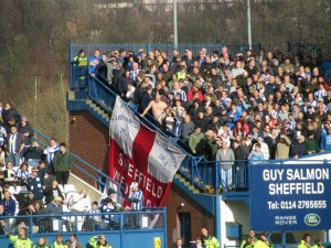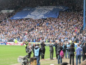 The Sheffield Wednesday flag travels up the Kop