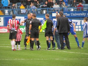 United and Wednesday players argue